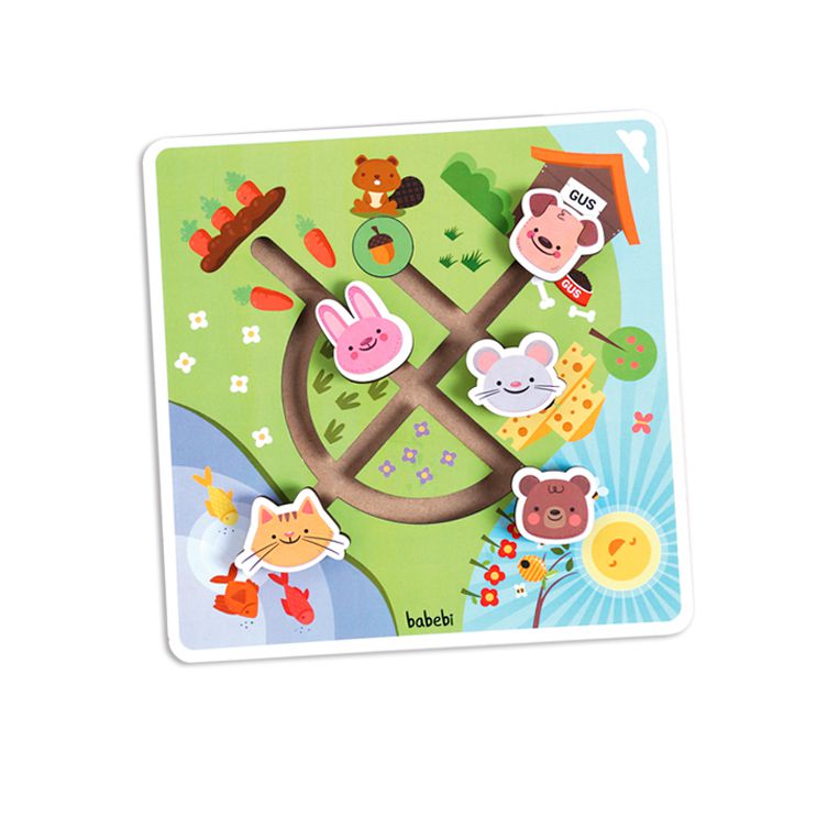 Composto: 1 tabuleiro labirinto e 5 botões de animais do campo.